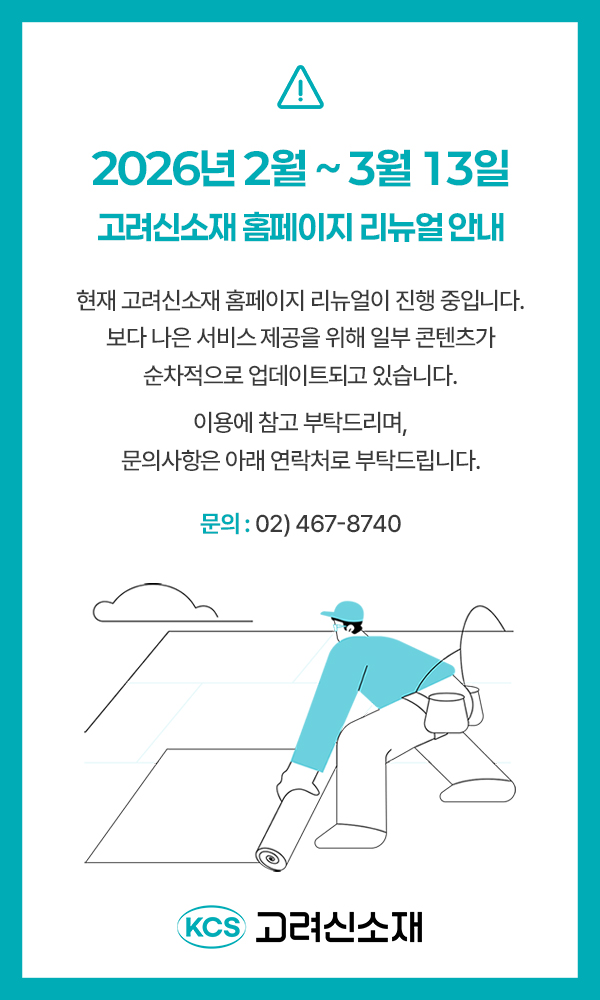 고려신소재, KCS, 케이씨에스, 고려신소재산업, EPDM, TPO, Tyvek, Xavan, Rockfon, Rockpanel, GIWS, 지붕방수시트, 투습방수시트, 기밀방습시트, 암면흡음천장재, 칼라일, Carlisle, Dupont, 듀폰, GCP, PRIMA, CRC보드, 금속흡음천장재, i-Mirco SC, i-Mirco SW, Enkaflex, 의료용원단, 산업용원단
